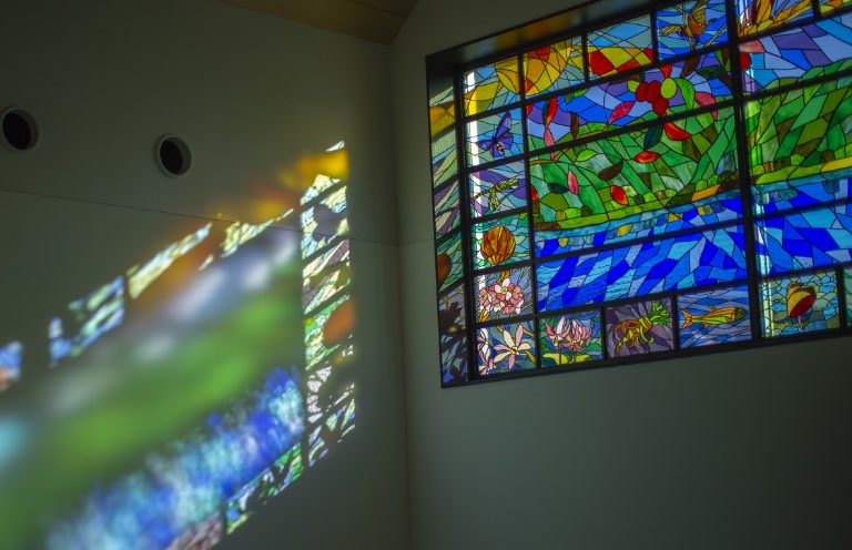 大型ステンドグラス自然光が創り出す“光の芸術”