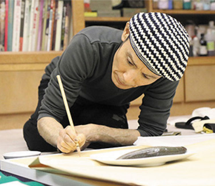 俳優・片岡鶴太郎を知らないひとはいないだろう。 幼少の頃より役者になることを夢見て、学校ではものまねのうまい人気者として親しまれた。高校卒業後、片岡鶴八に弟子入り。3年後には声帯模写で独り立ちし、東宝名人会、浅草演芸場に出演。現在は幅広いキャラクターを演じる役者として、ドラマ・映画・演劇など様々なメディアで活躍中。そんな片岡鶴太郎は芸術家としても才能をみせ、絵画の視点で書道にも挑戦し、第24回産経国際書展で産経新聞社賞を受賞した。今年は還暦の個展も大成功中。